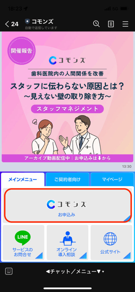 公式LINEの「メインメニュー」の「お申し込み」からご希望の分野をお申し込みください。